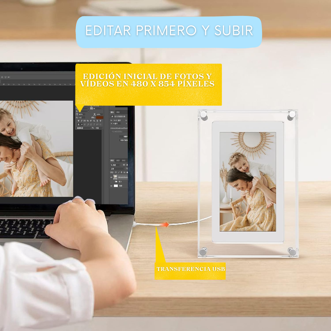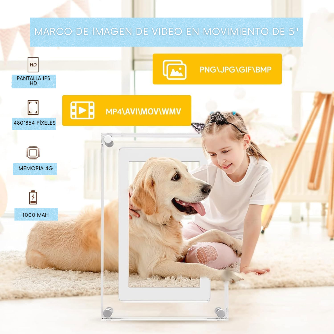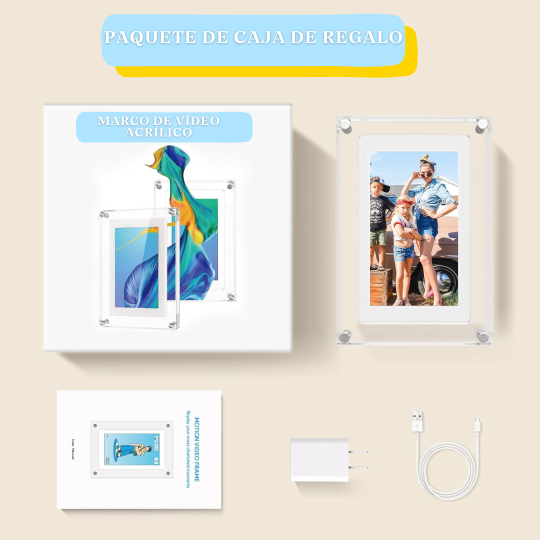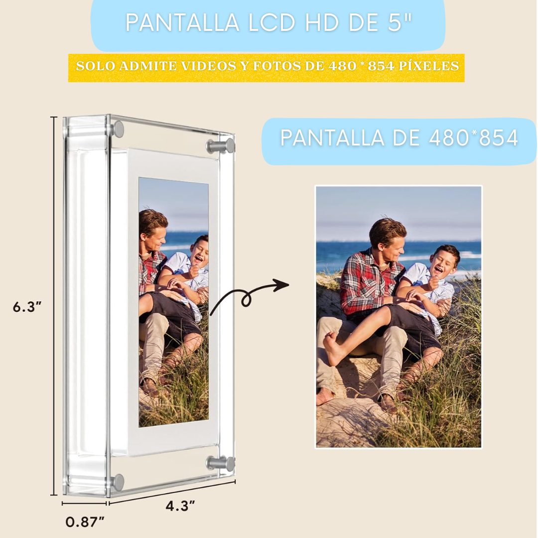Convierte tus momentos en experiencias vivas: su pantalla HD de 5'' te permite ver cada sonrisa y cada detalle en alta definición (480×854 px). No es solo un marco es una ventana para reconectar con lo que te importa, sentirte más cerca de los tuyos y volver a vivir esos instantes que te hacen feliz.